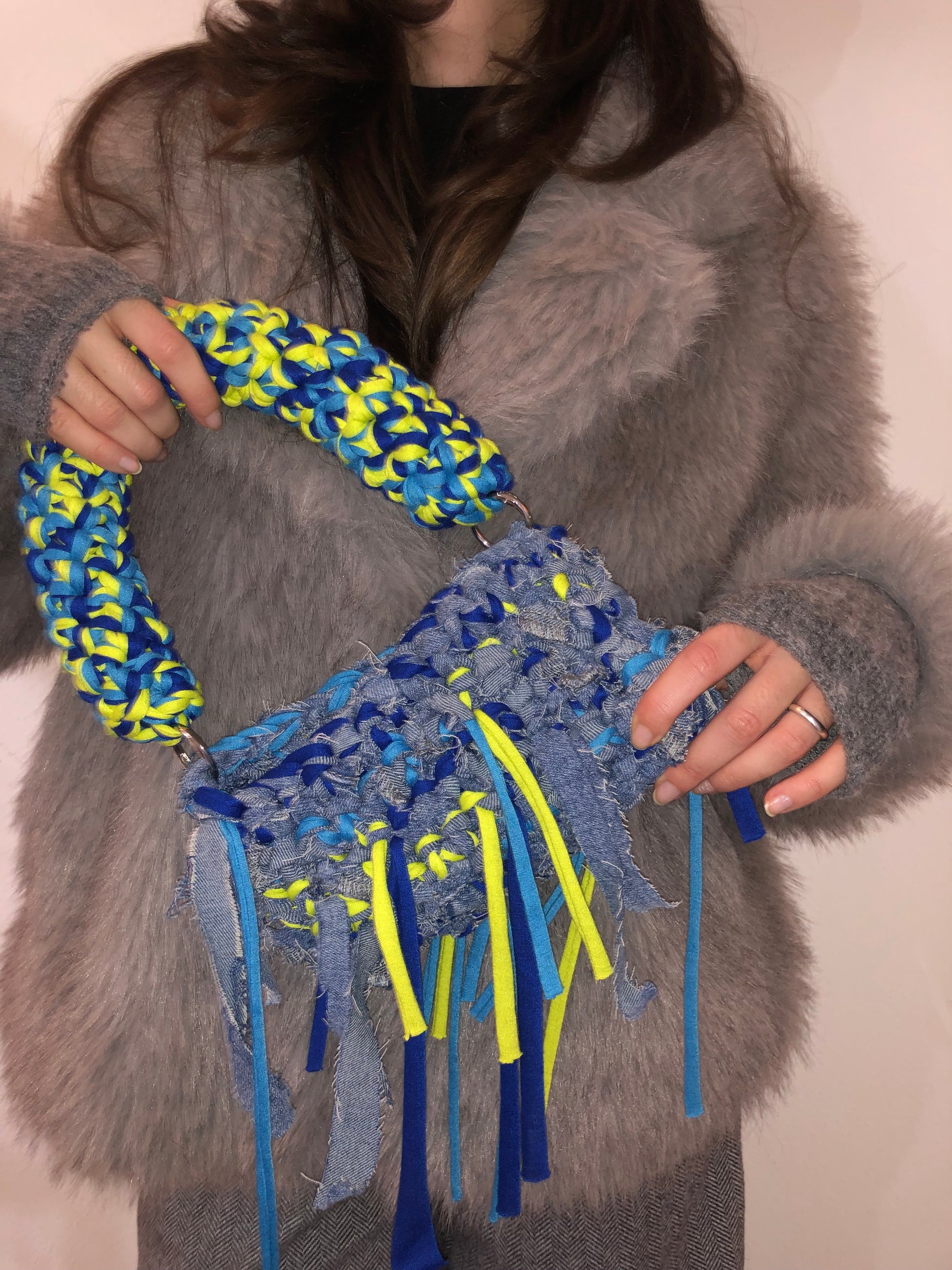 Perfetta per chi ama lo street style, il colore e l'unicità. Blue jeans baby è una dichiarazione di stile consapevole: goni borsa è unica e irripetibile, proprio perché nasce dal recupero creativo di materiali di seconda mano.