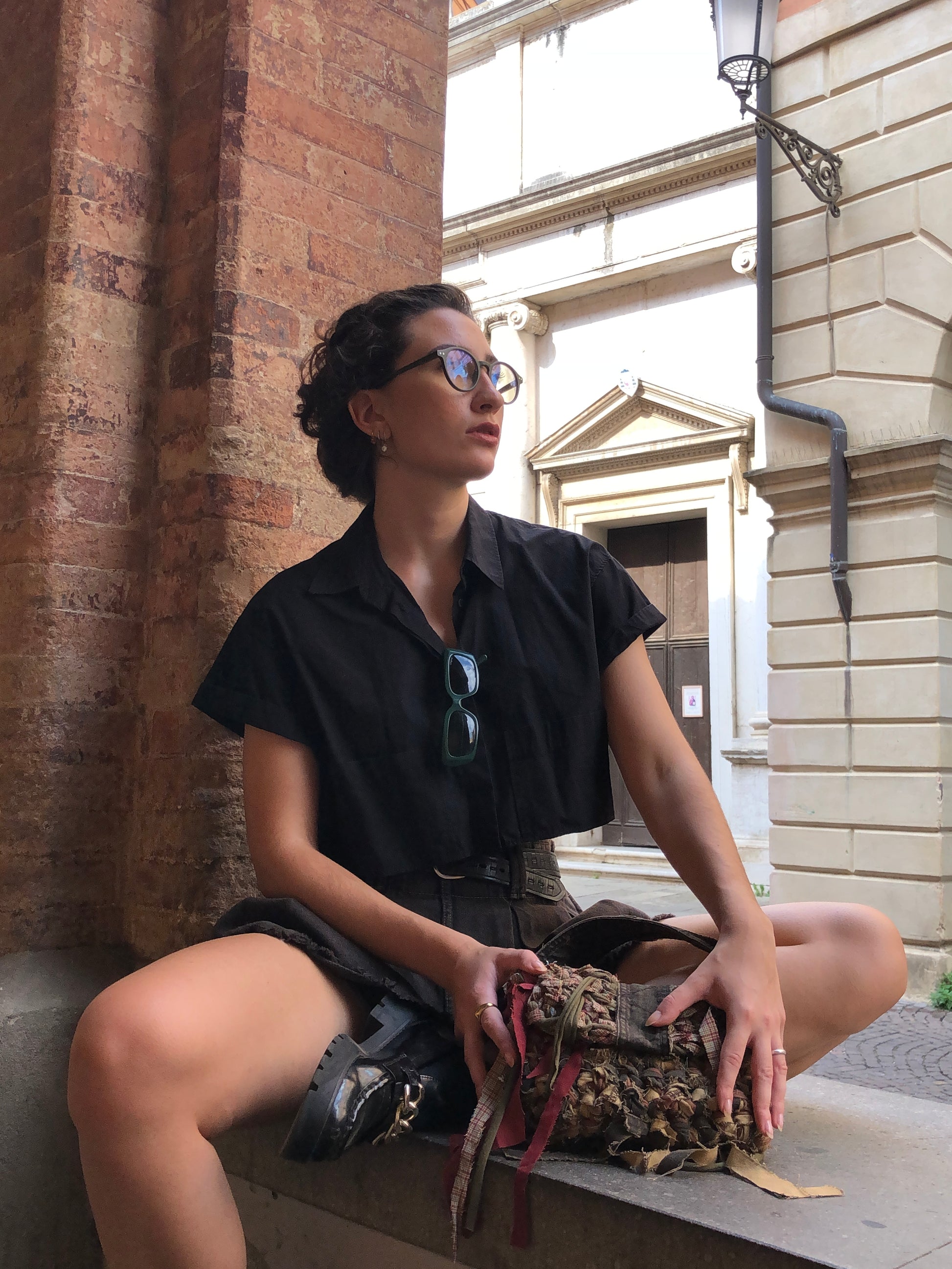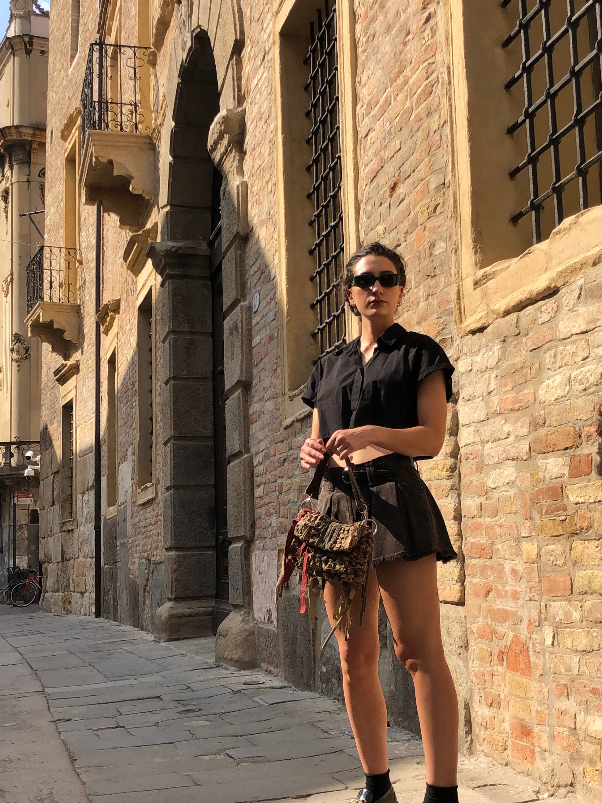 Cinnamon è stata realizzata artigianalmente con una gonna, un jeans e una camicia riciclati; è un omaggio ai colori della terra e della moda consapevole. I suoi toni caldi - cannella, mattone, oliva e sabbia - evocano il fascino dell'autunno e degli elementi naturali.