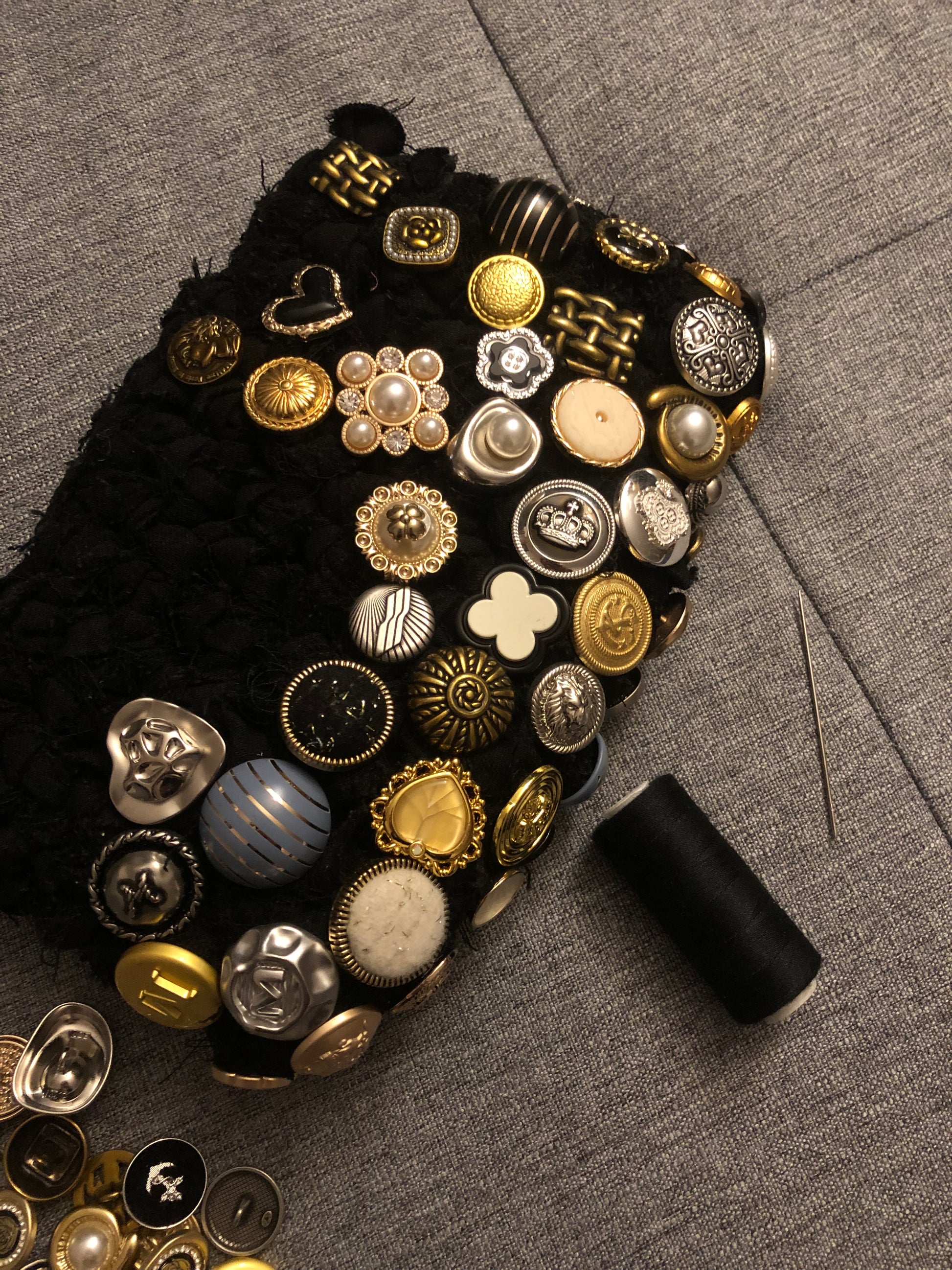 - Cuciture di bottoni e applicazioni realizzate completamente a mano