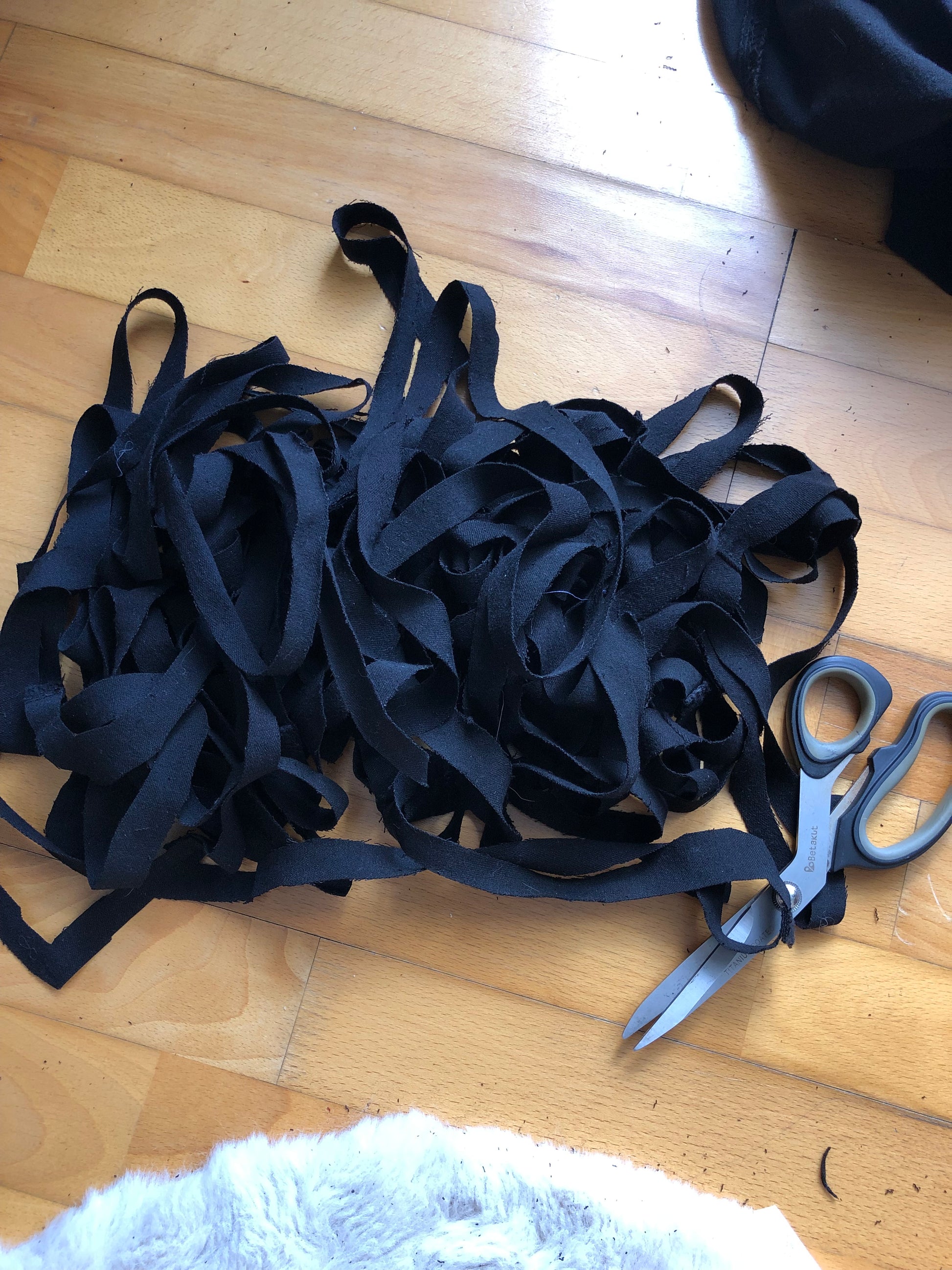 Materiali e dettagli: jeans riciclato, bottoni, fettuccia di cotone color nero (manico), moschettoni color argento, chiusura magnetica, fodera interna.