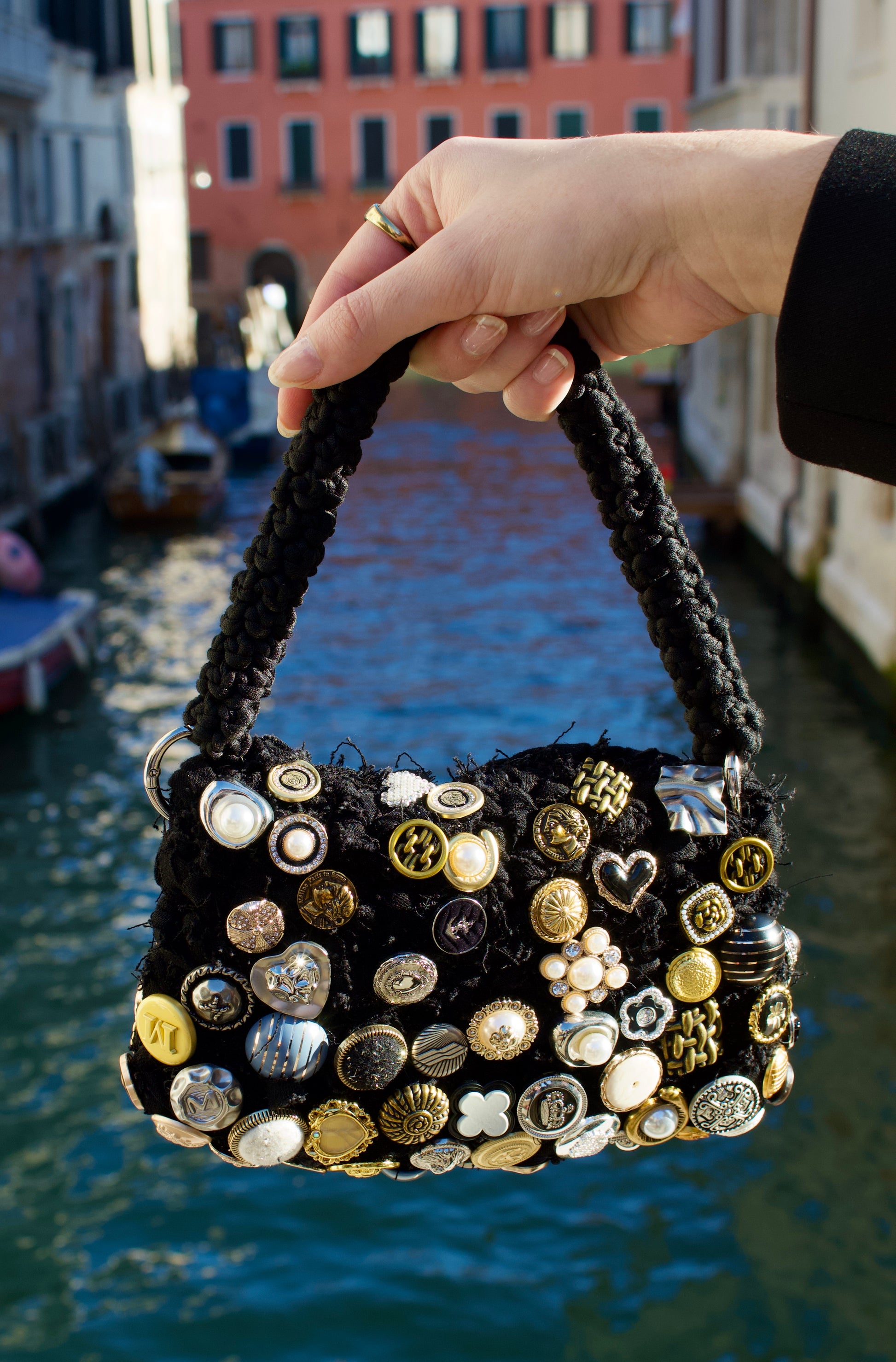 Unica e irripetibile, nasce dalla creatività e dal recupero sostenibile. Realizzata interamente a mano a partire da un jeans riciclato, e bottoni cuciti uno per uno. Un vecchio capo d'abbigliamento si trasforma così in un materiale vissuto, ricco di storia, che dà vita ad un accessorio elegante e fuori dal tempo.