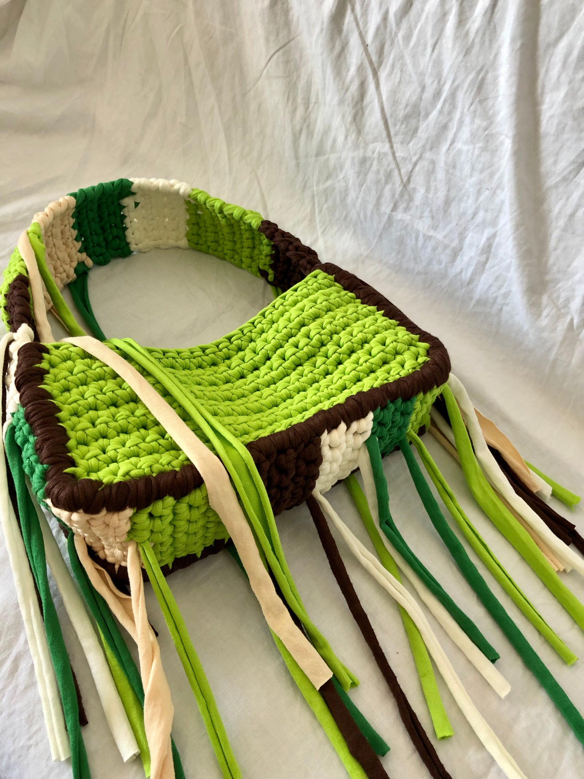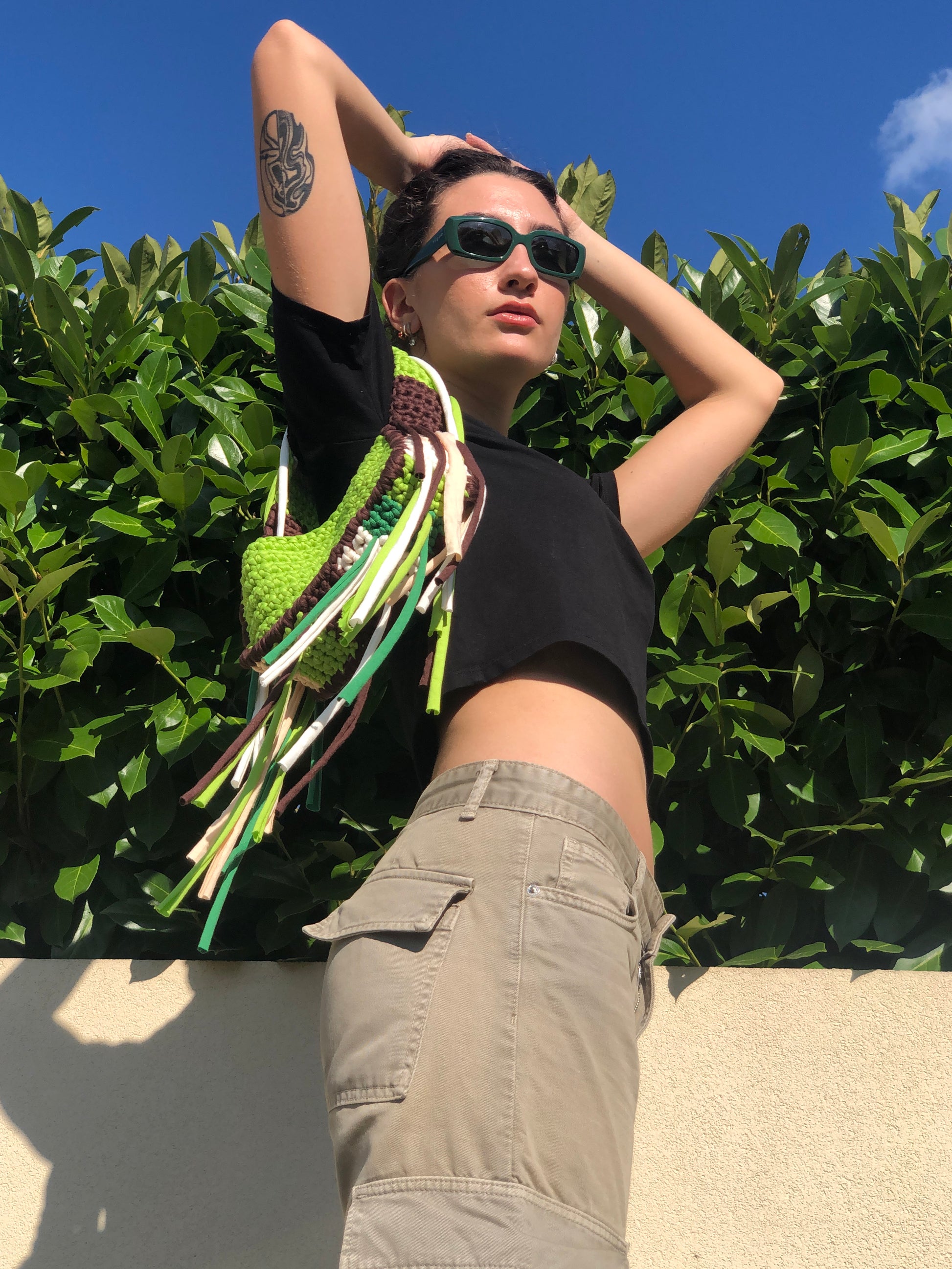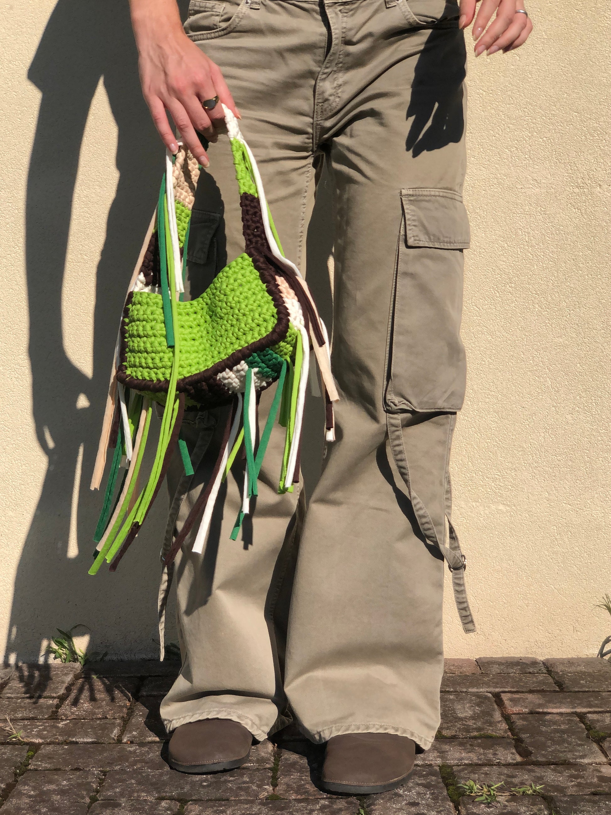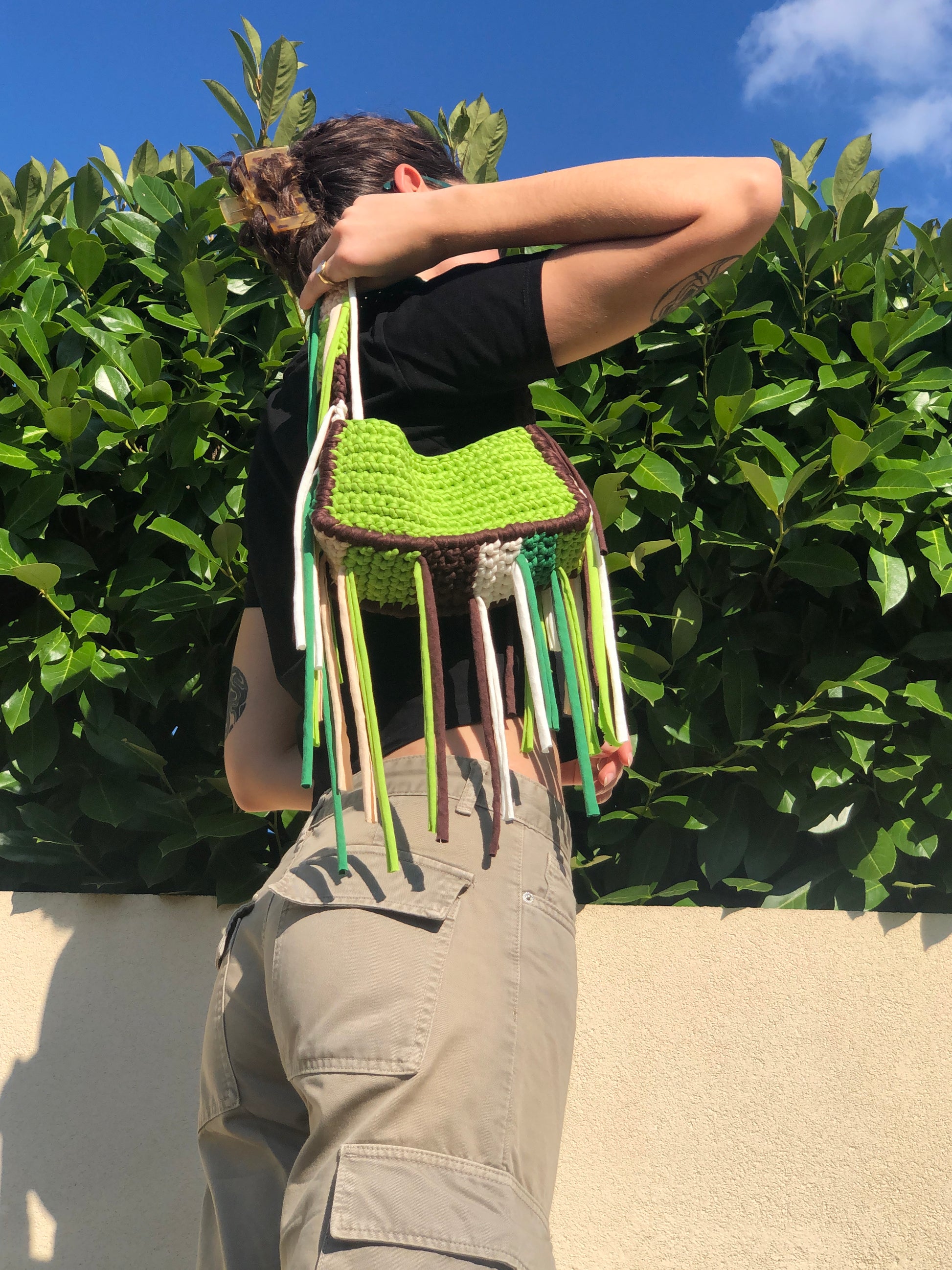 Porta con te un pezzo di natura urbana con questa borsa all'uncinetto dallo stile boho e contemporaneo. Interamente realizzata a mano, è l'accessorio perfetto per chi ama distinguersi con creatività e un pizzico di wild.